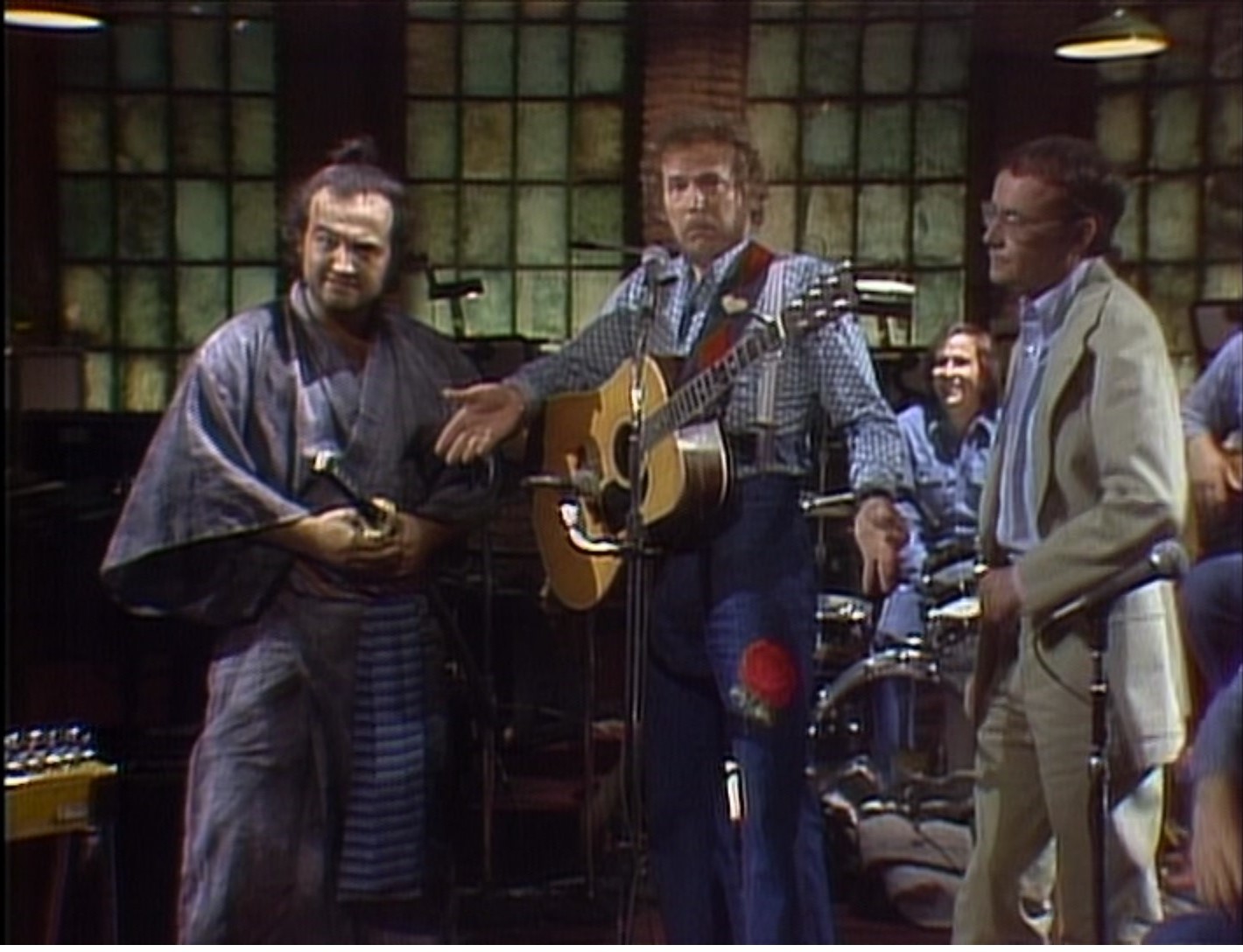 When the musical guest begins performing another song, Henry interrupts and tells Lightfoot he only gets to perform two songs. Samurai Futaba (Belushi) cuts the strings on Lightfoot's guitar to make sure he doesn't play another song.