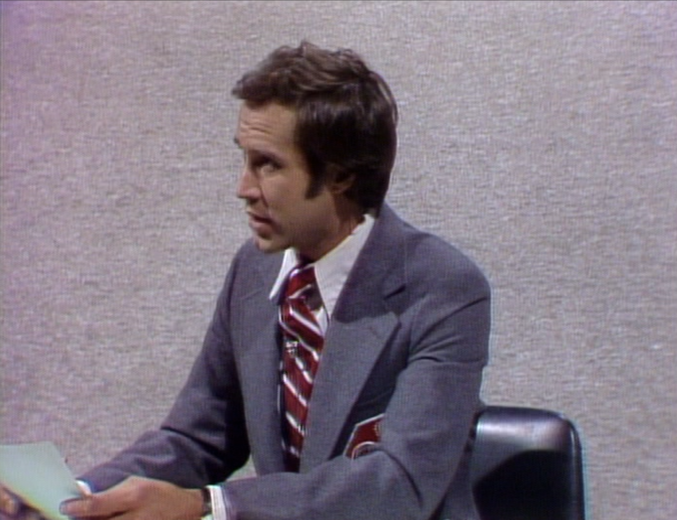During "Weekend Update," Chase is looking into the wrong camera...or maybe the wrong camera is turned on.