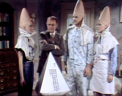 "Return Of The Coneheads"-This is the best (and longest) Coneheads sketch so far. It features two sets and a filmed portion that shows the Coneheads driving through the streets of New York City. It makes you wonder what passersby thought of them in 1977.